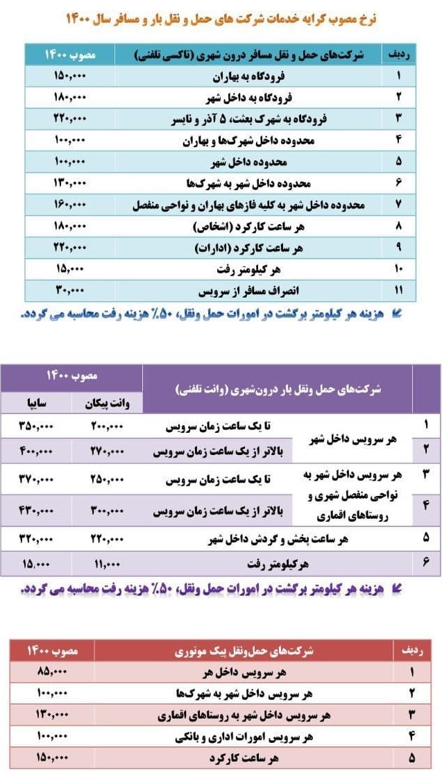 در ادامه نرخهای جدید آژانسهای تلفنی در سالجاری در مرکز استان کردستان را میبینید: