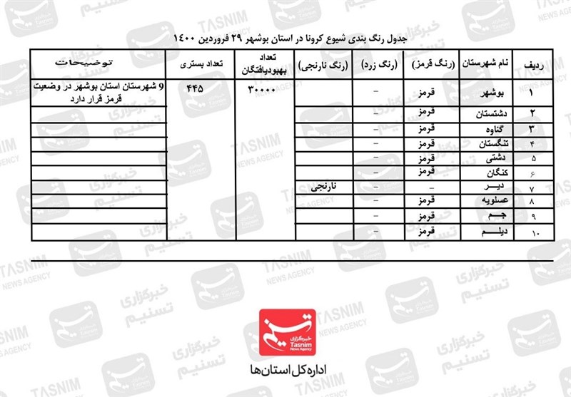 به گزارش خبرگزاری تسنیم از بوشهر در موج چهارم کرونایی موج چهارم کرونا آمار مبتلایان، بستری و فوتیها را افزایش داد در این راستا تنها راه مصون ماندن از کرونا رعایت پروتکل بهداشتی است.