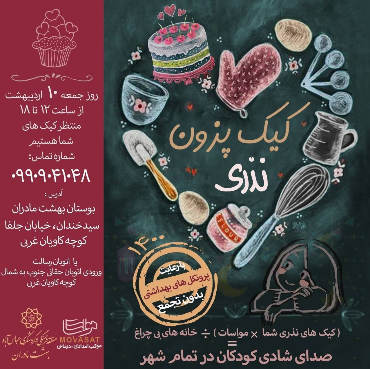 به گزارش گروه اجتماعی خبرگزاری تسنیم؛ پویش «کیک پزون» به مناسبت سالروز میلاد امام حسن مجتبی (ع) با همکاری مشترک گروه مواسات و منطقه فرهنگی و گردشگری عباسآباد جمعه 10 اردیبهشت ماه در بوستان بهشت مادران برگزار میشود.