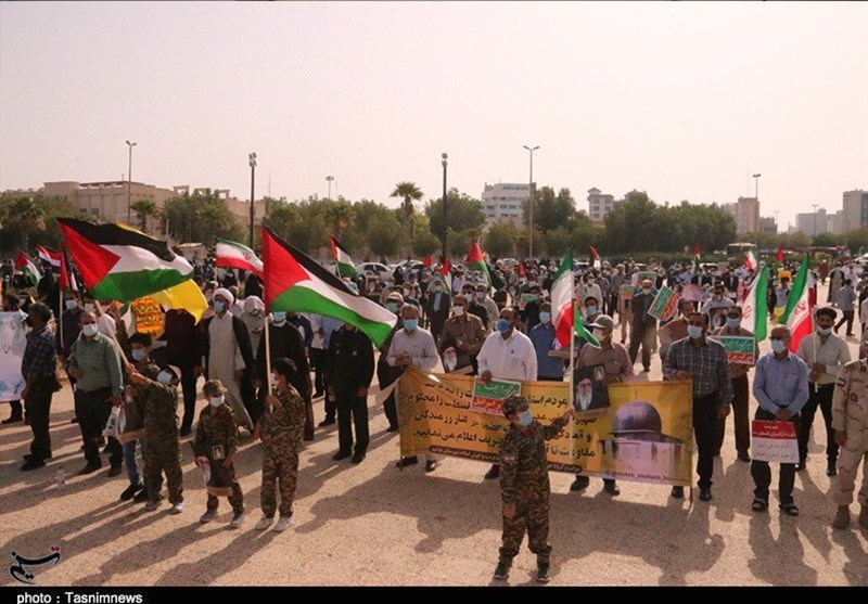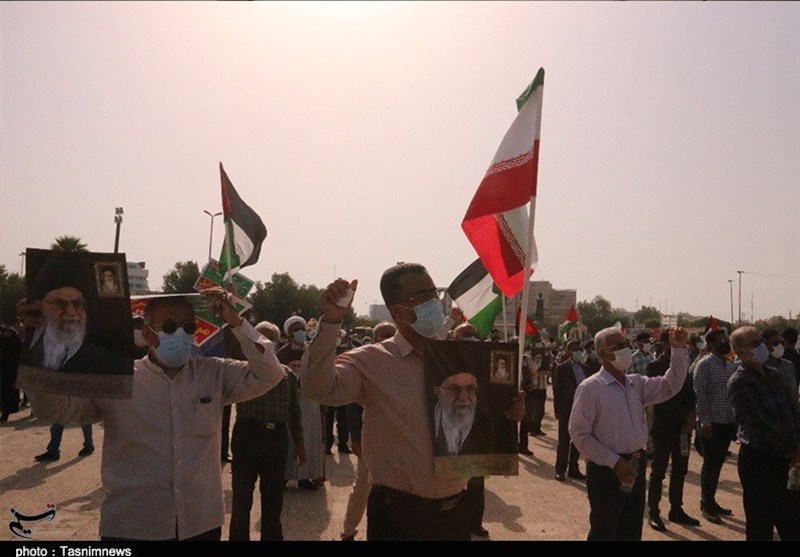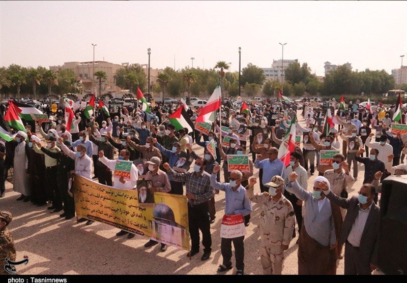 به گزارش خبرگزاری تسنیم از بوشهر ، مردم انقلابی و همیشه در صحنه بوشهر امروز با برپایی تجمع باشکوه در کنار خلیج‌فارس در میدان شهید رئیسعلی دلواری، جنایات رژیم صهیونیستی در به خاک و خون کشیدن مردم مظلوم فلسطین را محکوم کردند.