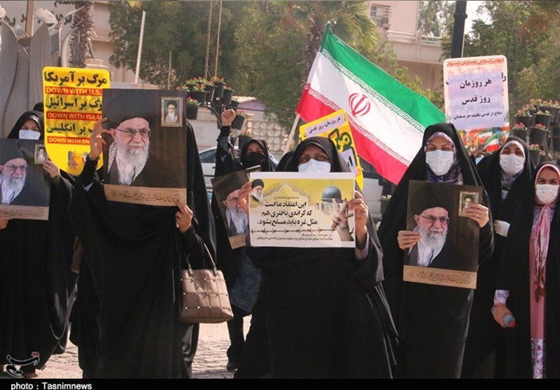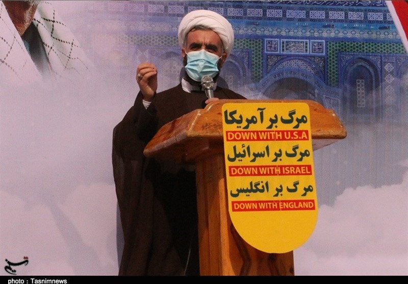 این تجمع که با رعایت دستورالعمل بهداشتی و فاصله گذاری اجتماعی برگزار‌ شد شرکت کنندگان بار دیگر جنایت وحشیانه رژیم کودک‌کشان اسرائیل غاصب را محکوم کردند.
