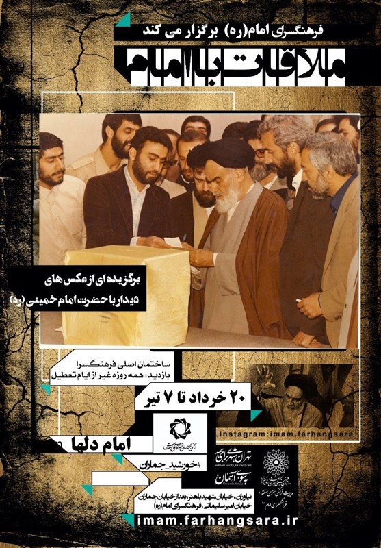 به گزارش خبرگزاری تسنیم، به مناسبت سی و دومین سالگرد رحلت امام خمینی(ره) و سیزدهمین دوره انتخابات ریاست جمهوری، نمایشگاهی از عکس‌های امام خمینی(ره) شامل برگزیده‌ای از مجموعه آثار عکاسان انقلاب به تعداد 30 اثر در فرهنگسرای امام(ره) و هم‌زمان فضای مجازی برگزار می‌شود.