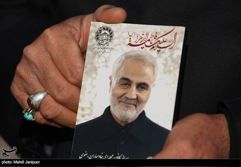 از همان ابتدای مراسم، استاد محمد کمالی از هنرمندان تصویرگر شهرمان دست به سیاه قلم برده و در حال کشیدن تصویری از سردار دلها، شهید حاج قاسم سلیمانی است. تصویرمتبسمی که انگار بروی جمع دختران شهدا لبخند می‌زند. آخر برای سردار این دختران با معصومه خودش فرقی ندارند.