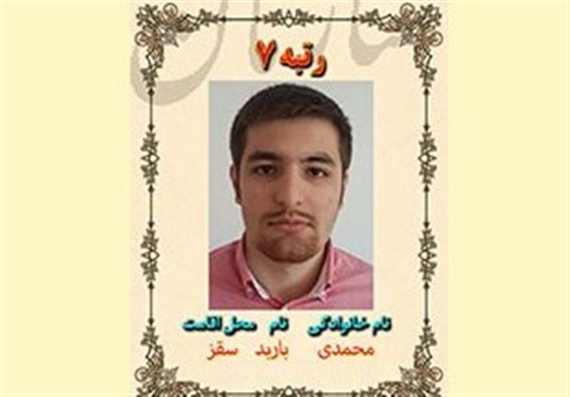 به گزارش خبرگزاری تسنیم از سقز، باربد محمدی دانشآموز اهل سقز استان کردستان است که توانسته در کنکور گروه آزمایشی علوم تجربی رتبه هفتم را کسب کند. وی مقاطع ابتدایی و متوسطه اول را در این شهرستان به پایان رسانده و دوره متوسطه دوم را در دبیرستان تیزهوشان شهید بهشتی سقز تحصیل کرده است.