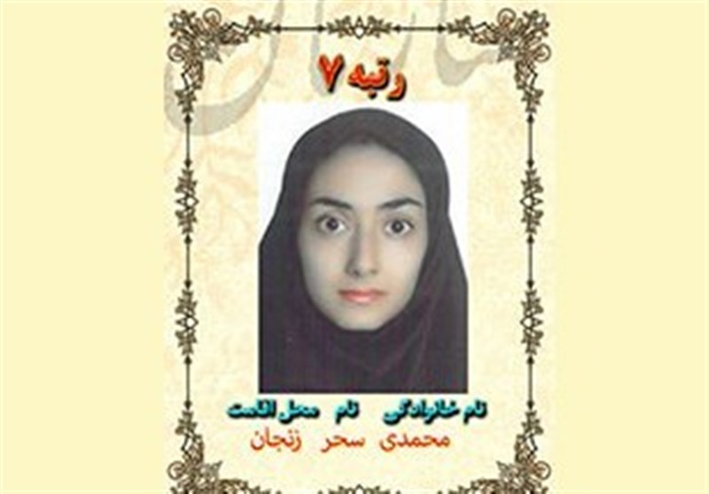 سحر محمدی که متولد 7 فروردین 1381 متولد شهر زنجان است توانست رتبه هفت یکی از گروههای سخت کنکور سراسری (علوم انسانی) را به دست بیاورد که به اذعان خود در این موفقیت خانواده وی نقش بسزایی داشتهاند.
