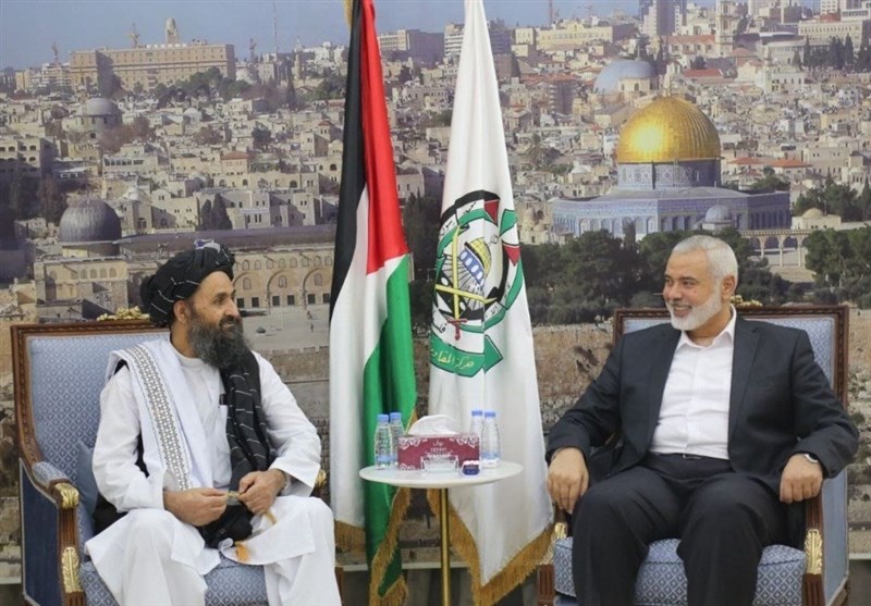از سوی دیگر، شبکه راشاتودی نیز خبر داد که «اسماعیل هنیه» رئیس دفتر سیاسی جنبش مقاومت اسلامی حماس در گفت‌وگویی تلفنی با ملا عبدالغنی برادر، رئیس دفتر سیاسی طالبان در افغانستان اظهارداشت که پایان اشغال خاک افغانستان مقدمه‌ای برای از بین رفتن همه قدرت‌های ستمگر است که در راس آن اشغال سرزمین فلسطین توسط رژیم اسرائیل قرار دارد.