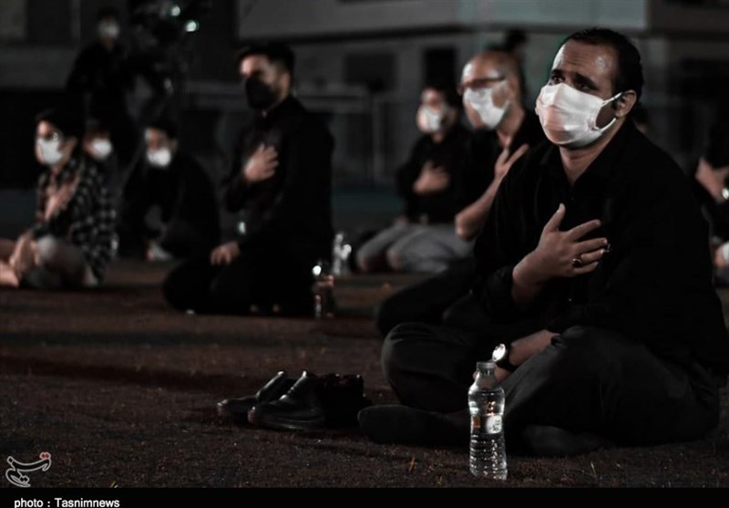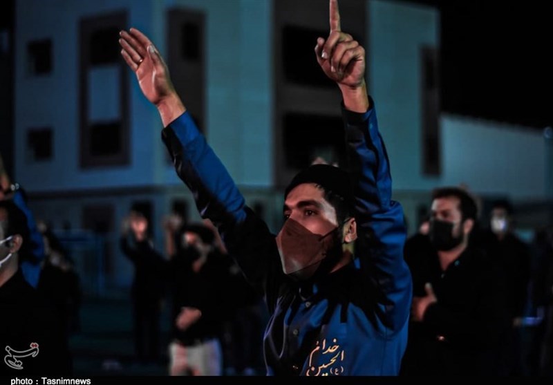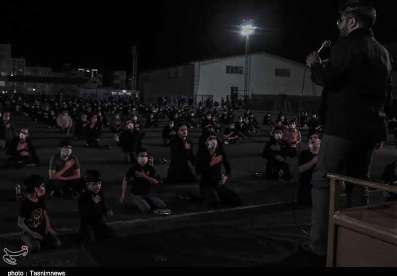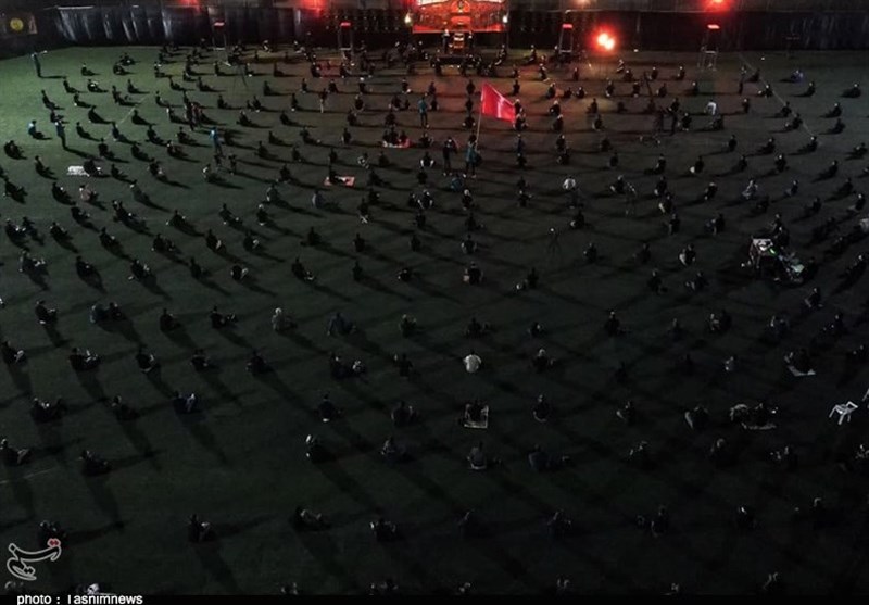 مراسم عزاداری اباعبدالله الحسین(ع) بارعایت ضوابط بهداشتی درهیئت‌ روضه‌الشهدا‌(ع) بیرجند درحال برگزاری است.