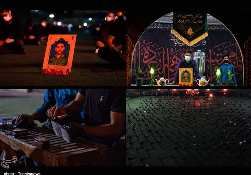 برای کودکان هم در همان محیط بیرون فضایی تدارک دیده شده است تا بتوانندنقاشی کنند، راستی میزبانان هیات که نام خادم الحسین(ع) بر روی لباسهایشان حک شده است،صلواتی کفش عزاداران را هم واکس میزنند،اصلا جنس غم حسین فرق می‌کند آن طور که در عزای او پیر و جوان زن و مرد همه باهم یکدل می‌شوند تا هرکدامشان به نحوی نذری دهند، در هیات روضه الشهداء هر شب برای شهدای مدافع حرم هم روضه خوانی می‌شود.