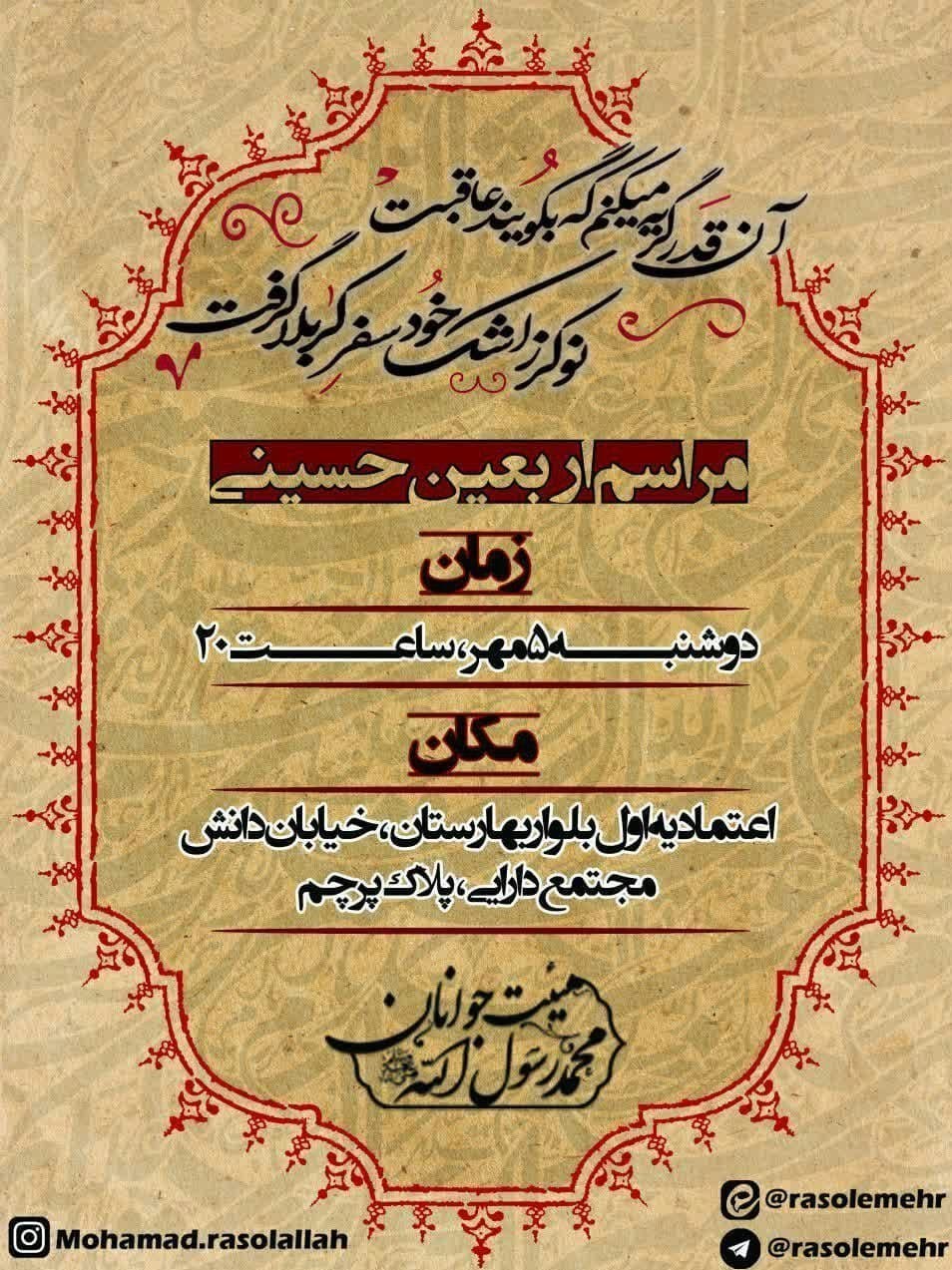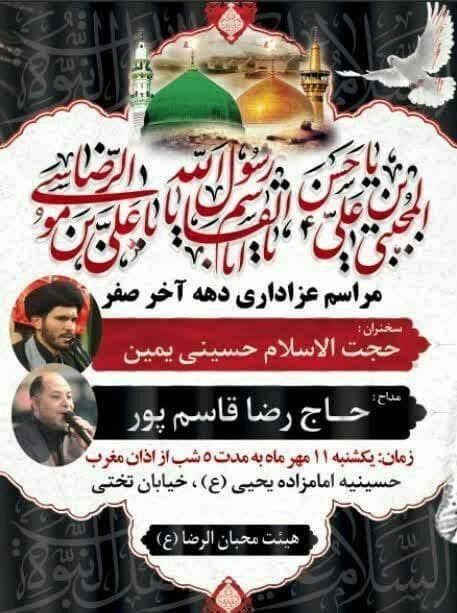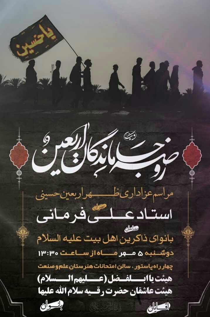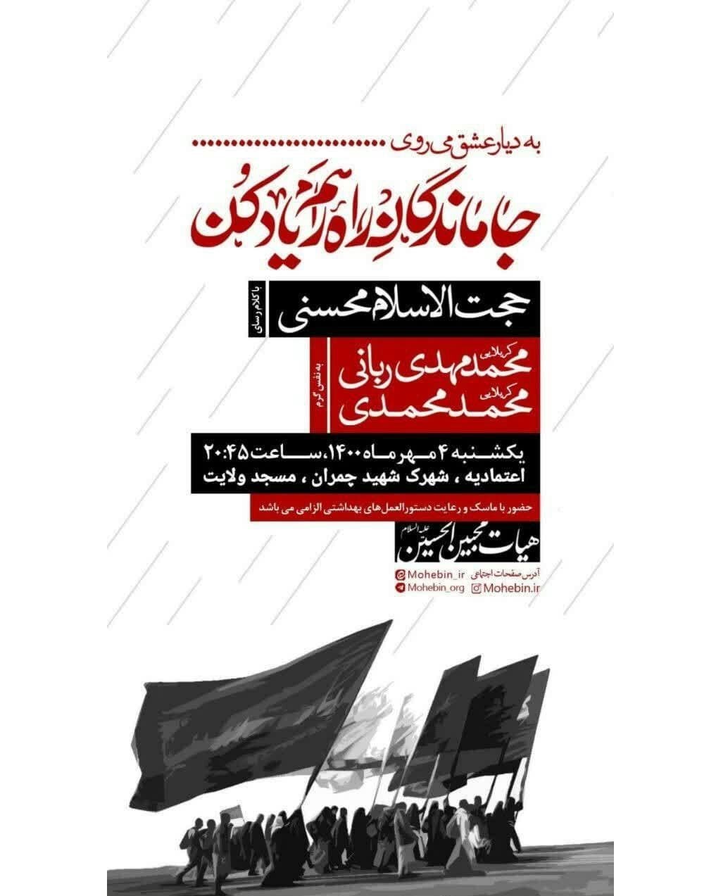 لازم به ذکر است تمامی برنامههای عزاداری به دلیل شیوع بیماری کرونا با رعایت نکات بهداشتی و فاصله گذاری اجتماعی برگزار شده و استفاده از ماسک نیز برای تمامی افراد شرکت کننده الزامی است.