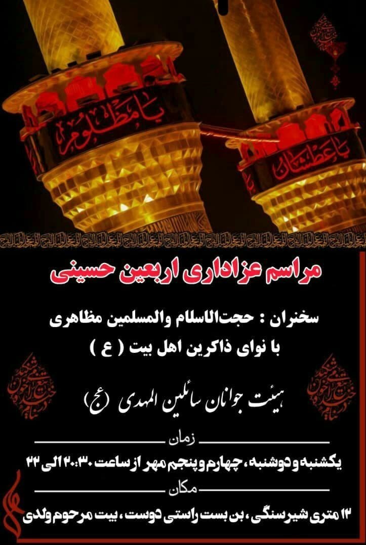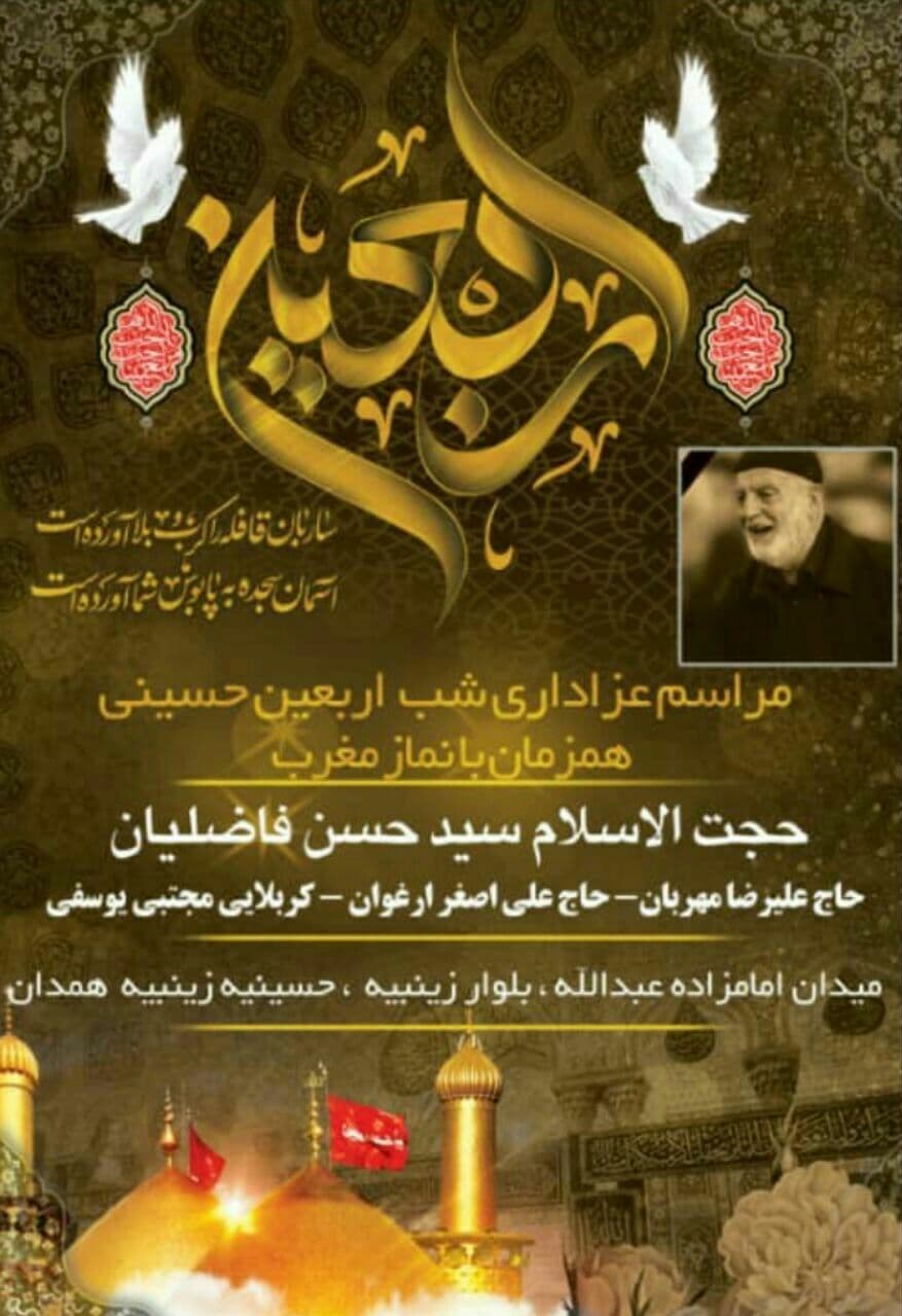 به همین مناسبت خبرگزاری تسنیم برنامههای هیئتهای مذهبی همدان و محافلی را که در شب و روز اربعین حسینی اقدام به برپایی مراسم عزاداری و ذکر میکنند، جهت دسترسی بهتر و سریعتر مخاطبان به تفکیک زمان و نشانی هیئت بر اساس زیر منتشر کرده است.