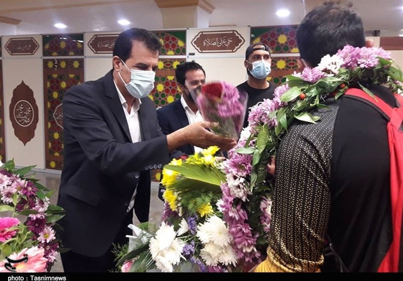 این ورزشکار بوشهری با استقبال مسئولان و ورزشکاران وارد فرودگاه بوشهر شد.