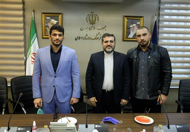 وزیر فرهنگ با 2 کشتی‌گیر طلایی مسابقات نروژ دیدار کرد