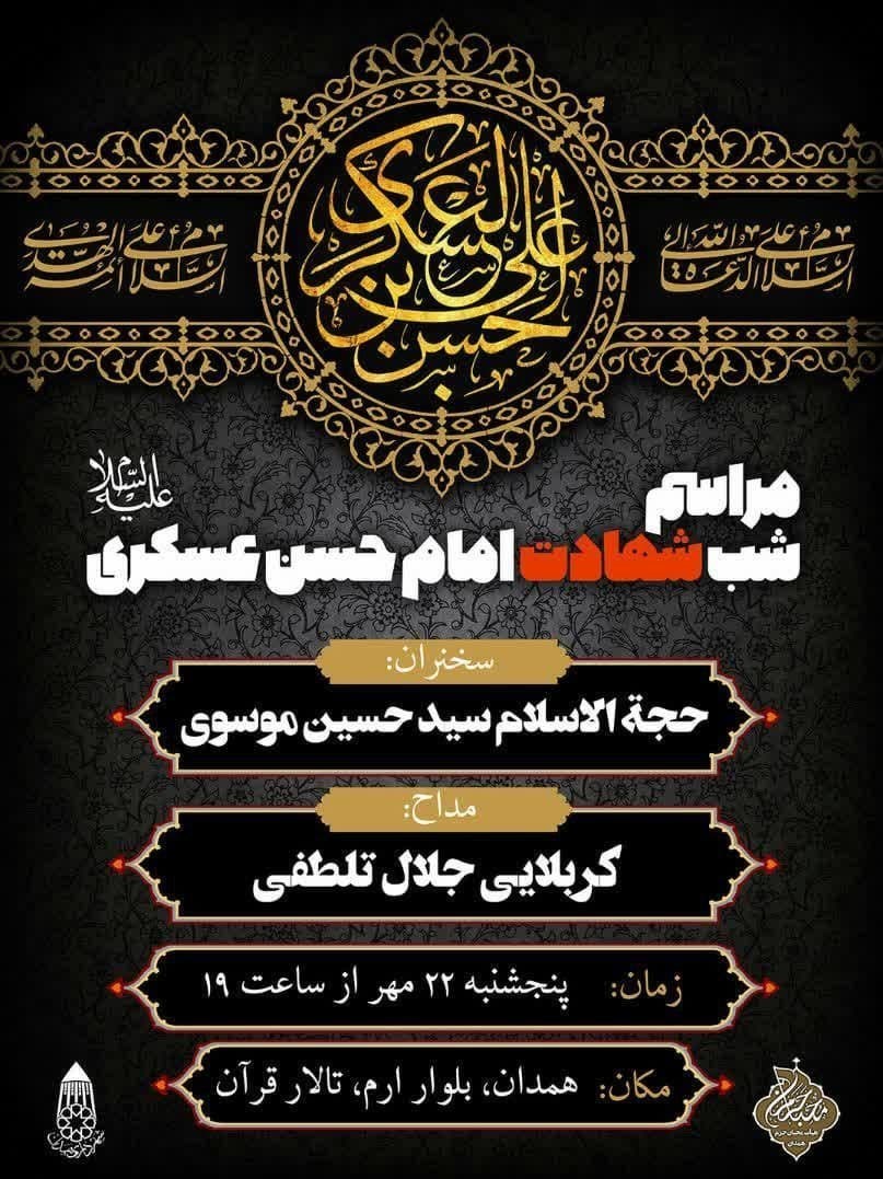 به گزارش خبرگزاری تسنیم از همدان٬ همزمان با فرا رسیدن هشتم ربیعالاول سالروز شهادت امام حسن عسگری (ع) پدر بزرگوار امام عصر ارواحنا فدا هیئتهای مذهبی همدان خیمههای عزا را برپا کرده و به سوگ مینشینند.