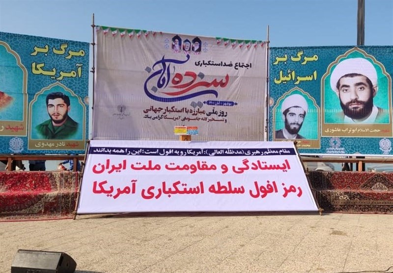 در مراسم 13 آبان امام جمعه، استاندار، فرماندهان نیروهای مسلح، جوانان، نوجوانان دانش آموزان، دانشجویان، مسئولان و اقشار مختلف مردم بوشهر جلوهای از اقتدار و وحدت را به نمایش گذاشتند.