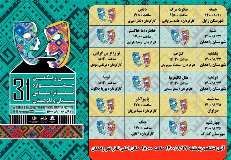 مسگرانی با اشاره به اینکه بیشترین آثار منتخب اجرا شامل پنج اثر مربوط به شهرستان زاهدان است، گفت: 2 اثر از زابل، یک اثر از سراوان و یک نمایش از کنارک به اجرای نمایش میپردازند.