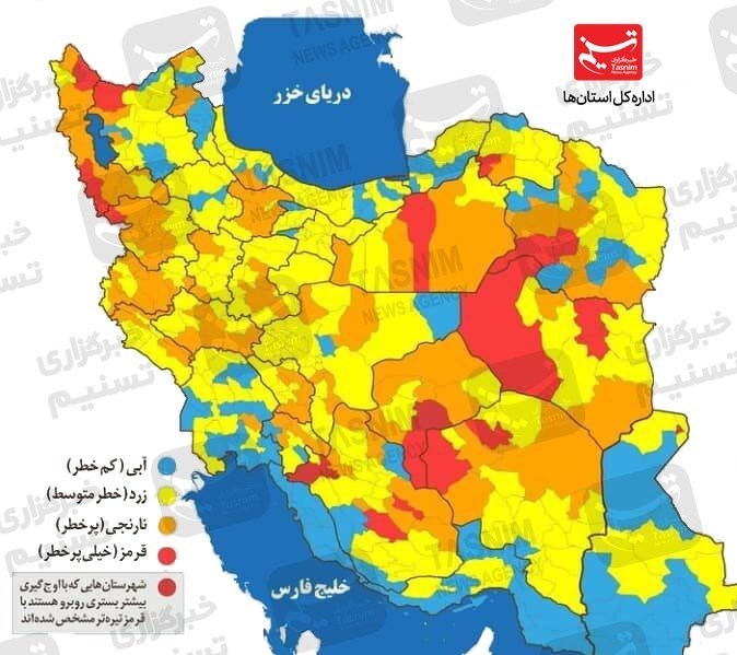 رنگبندی شهرستانها و استانهای مختللف نشان از یک تغییر به سمت گسترش و شیوع دوباره بیماری دارد به این ترتیب که در استان فارس از 36 شهرستان فارس، 5 شهرستان در وضعیت قرمز کرونایی، 9 شهرستان نارنجی، 17 شهرستان زرد و 5 شهرستان در وضعیت آبی هستند.