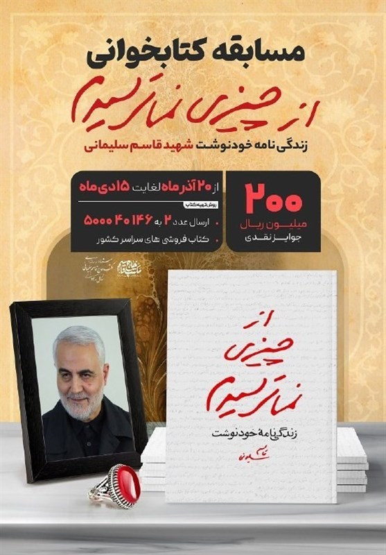 مسابقه کتابخوانی «کتاب‌قهرمان» با محوریت خاطرات خودنوشت شهید سپهبد قاسم سلیمانی از امروز آغاز شده است و تا پانزدهم دی‌ماه ادامه دارد.