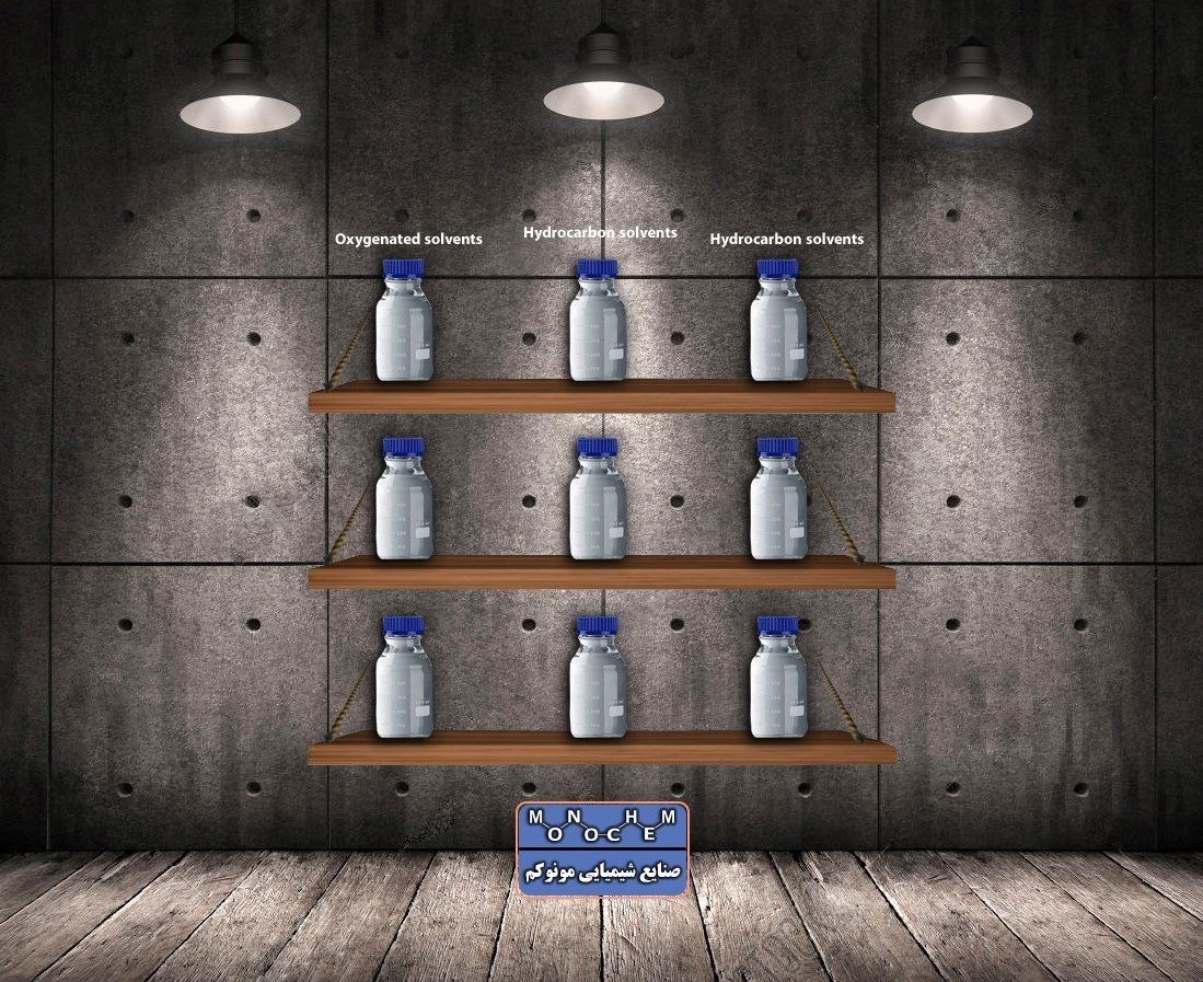 نمونه هایی از حلال های اکسیژن دار عبارتند از الکل ها، اترها، استرها، گلیکول اترها، استرهای گلیکول اتر و کتون ها.