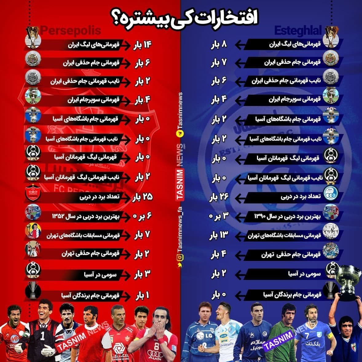 اینفوگرافیک | افتخارات استقلال بیشتر است یا پرسپولیس؟