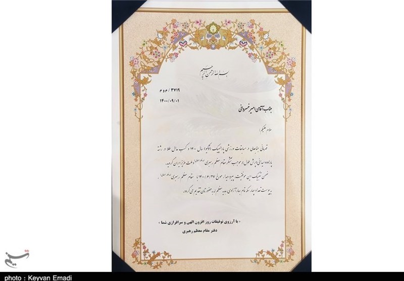 در این مراسم، آیتالله صفایی بوشهری هدیه مقام معظم رهبری به امیر خسروانی قهرمان مسابقات پارالمپیک توکیو 2020 در رشته پرش طول اهدا کرد.
