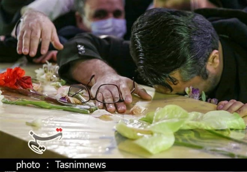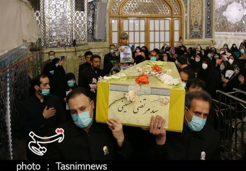 وداع با پیکر شهید مدافع حرم سید مرتضی حسینی در حرم مطهر رضوی+تصاویر