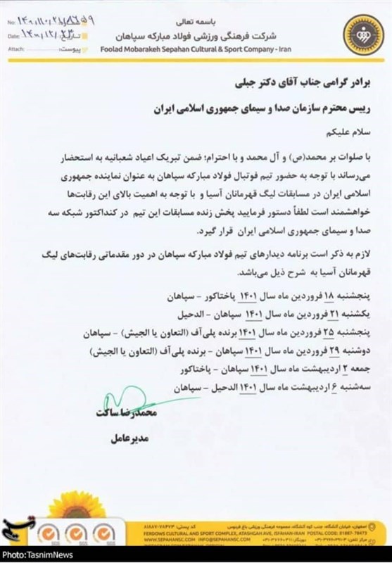 باشگاه سپاهان در اعتراض به عدم پخش تلویزیونی بازی طلاییپوشان از شبکه سوم نامهای صادر و درخواست کرده است که صداوسیما پخش مستقیم بازیهای سپاهان در لیگ قهرمانان را در دستور کار قرار دهد.