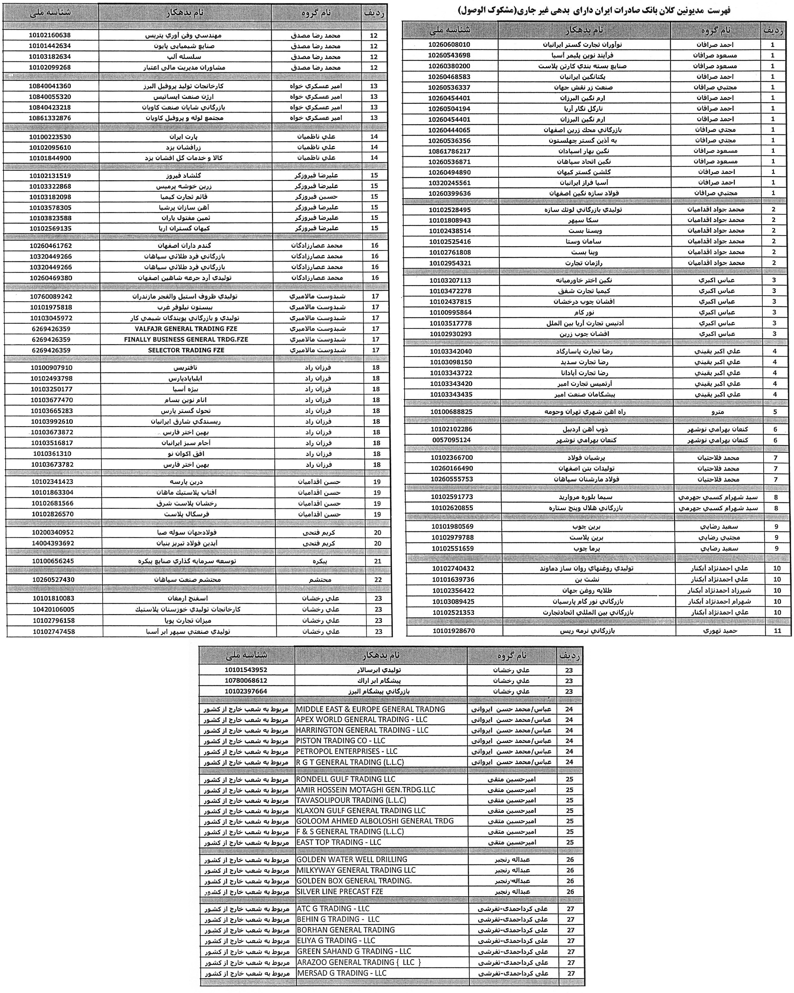 به گزارش خبرگزاری تسنیم به نقل از روابط عمومی بانک صادرات ایران، حسب قوانین جاری کشور و تأکید وزارت اقتصاد و دارایی مبنی بر اعلام بدهکاران بانکی، این بانک اسامی بدهکاران عمده و بزرگ خود را بدین شرح اعلام کرد؛