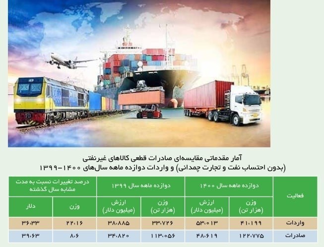 5 ـ افزایش 40درصدی صادرات غیرنفتی نسبت به سال 1399