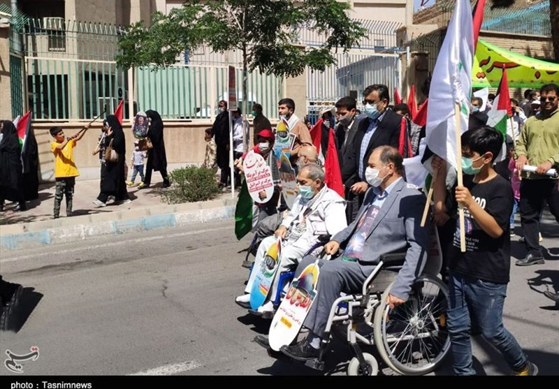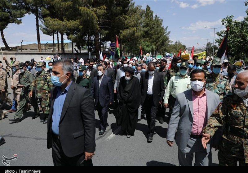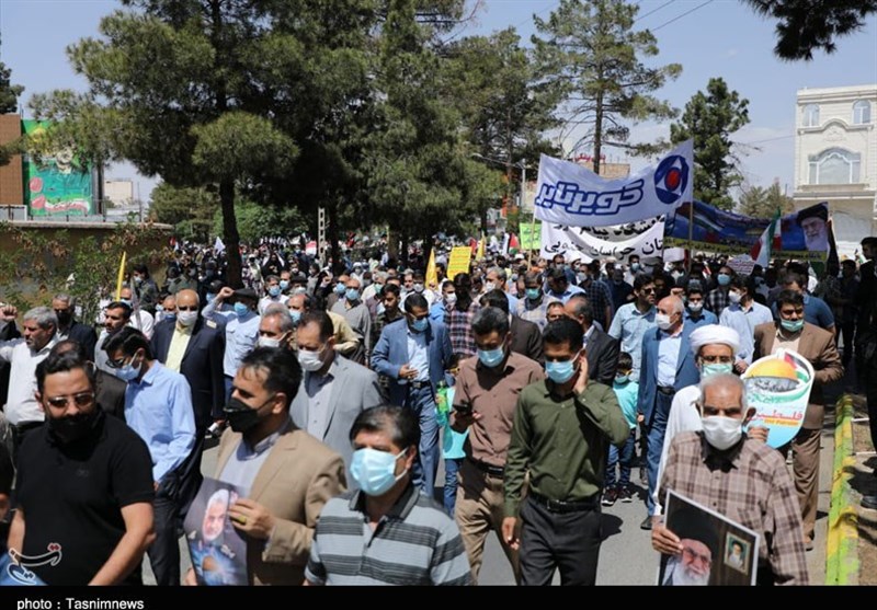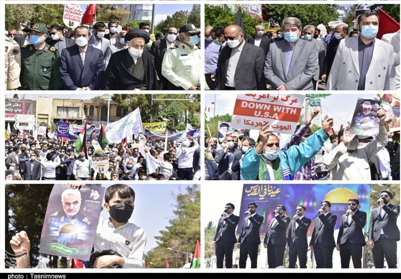 امروز از پیروجوان ،زن ومرد، شیعه وسنی در خراسان جنوبی همزمان با سراسر کشور در مراسم روز جهانی قدس حاضر شدند و با شعارهای «مرگ بر آمریکا» و «مرگ بر اسرائیل» انزجار خود از اقدامات رژیم غاصب صهیونیستی را به نمایش گذاشتند.
