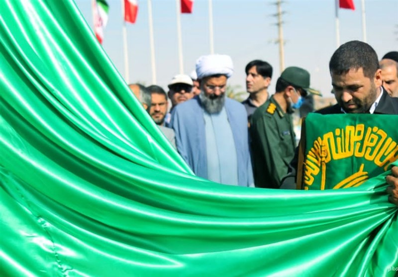 پرچم بزرگ و متبرک امام رضا (ع) در مرکز شهرستان دشتی برافراشته شد