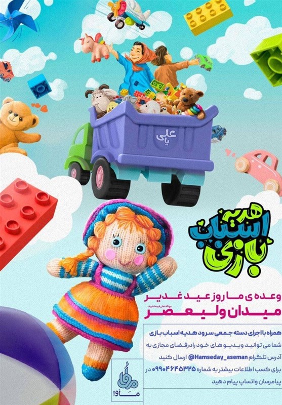 به گزارش خبرگزاری تسنیم، مرکز موسیقی مأوا به مناسبت فرارسیدن دهه ولایت و عید سعید غدیر خم، با همکاری هیأتهای مذهبی و گروههای مردمی، پویشی برای گروه سنی کودک و نوجوان با عنوان «نذر اسباب بازی» برگزار میکند. هدف اصلی از برگزاری این پویشها راهاندازی جریانهای مردمی حول محور سرود و ارزشهای اسلامی و اجتماعی است.
