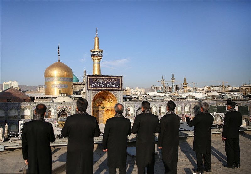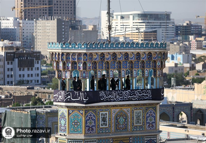 صبح امروز نیز از ساعت هفت صبح گروهی از خادمان رضوی بر فراز 14 گلدسته حرم حضور یافتند و در رثای امام حسین(ع) و یاران مظلومش مرثیه‌خوانی کردند.