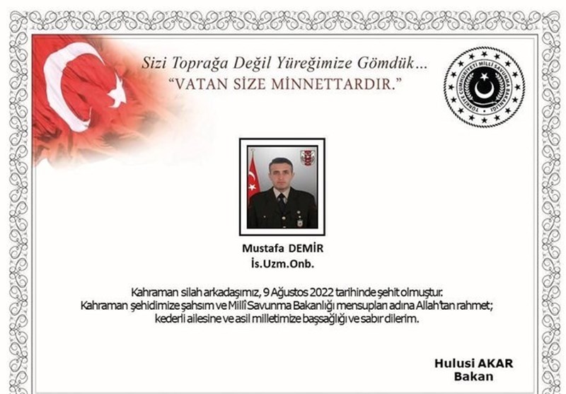 بر اساس این بیانیه، "مصطفی دمیر" در روز ششم آگوست بر اثر برخورد به یک مین کنارجادهای مجروح شد و در بیمارستان بعد از چند روز بر اثر شدت جراحات کشته شد.