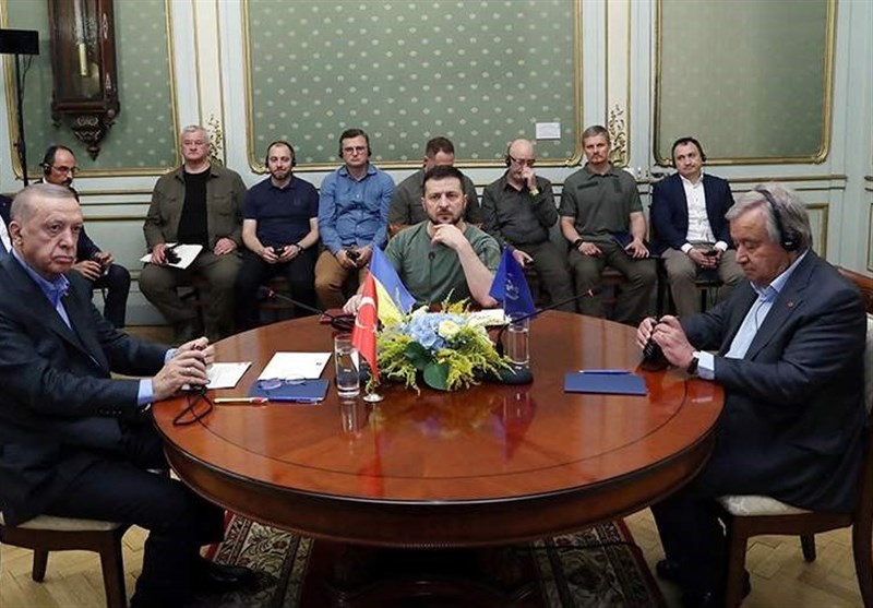 به گزارش گروه بین الملل خبرگزاری تسنیم، عصر روز پنجشنبه نشست سهجانبه بین ولادیمیر زلنسکی، رئیس جمهوری اوکراین، رجب طیب اردوغان، رئیس جمهوری ترکیه و آنتونیو گوترش، دبیرکل سازمان ملل در شهر لووف (در غرب اوکراین) به پایان رسید که حدود یک ساعت بطول انجامید. در این دیدار موضوع درگیریهای نظامی در مجاورت نیروگاه اتمی زاپوروژیه و لزوم تامین امنیت این تاسیسات، روند اجرای توافقنامه صادرات غلات و همچنین موضوع بازسازی اوکراین پس از جنگ مورد بحث و بررسی طرفین قرار گرفت.
