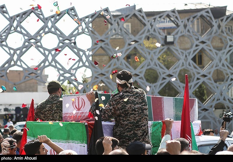 به گزارش خبرگزاری تسنیم از آبادان، پیکرهای مطهر شهیدان "نادر آغاجریپور" و "جلیل امانیپور" صبح امروز بر روی دستان مردم شهیدپرور آبادان از مقابل ساختمان ناحیه مقاومت بسیج این شهر به سمت سینما نفت تشییع و سپس برای خاکسپاری به گلزار شهدا این شهر منتقل شد.