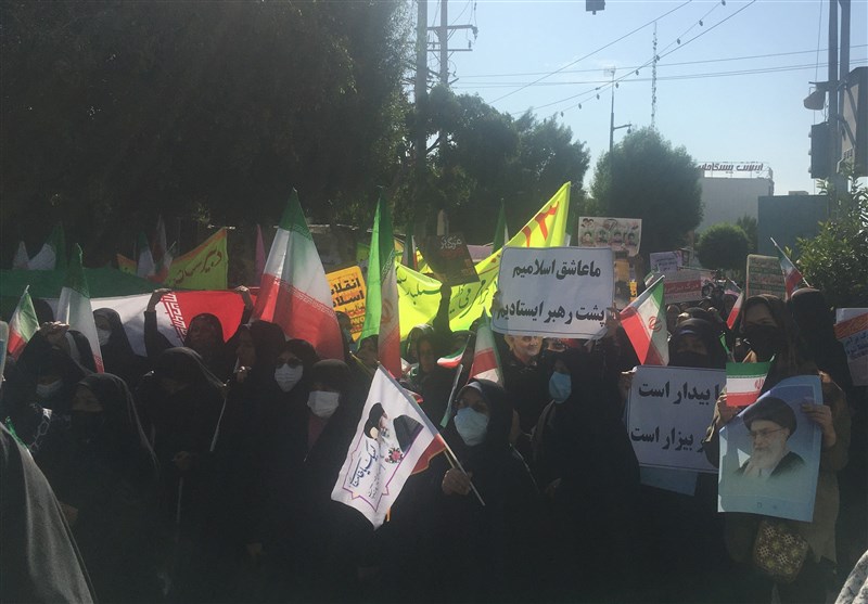 خانم حدود 45 ساله هم که نوزادش در بغل گرفته بود و شعار مرگ بر آمریکا سر می‌داد گفت: جنایت در عملیات تروریستی شاه چراغ شیراز با طراحی استکبار صورت گرفته که باید صف خود را از اغتشاشگران و آشوب‌طلب جدا کنیم.