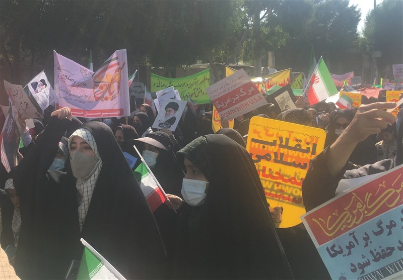 شرکت‌کنندگان در این راهپیمایی با شعارهای، بانی اغتشاشات آمریکاست آمریکا، عامل این جنایات آمریکاست آمریکا - حکومت آمریکا حکومت فاشیست است، کاخ سفید همیشه، حامی صهیونیسم است -  امروز روز 13 آبان است ،  روز تصرف دژ شیطان است - امروز روز نصر جندالله است، یادآور هجرت روح الله است - شعار دانش‌آموز، مرگ بر آمریکا - شعار هر دانشجو ، مرگ بر آمریکا - شعار هر ایرانی، مرگ بر آمریکا جنایت دشمنان علیه اسلام، انقلاب اسلامی و ملت ایران را محکوم کردند.