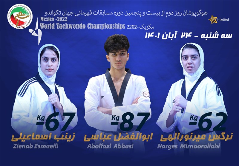 سیده نرگس میرنوراللهی در وزن 62- کیلوگرم پس از یک دور استراحت، کارولین جلسویک از نروژ را دو بر یک از پیش رو برداشت و در ادامه به مصاف اشلی کرایولد نفر دوم رنکینگ جهانی از کانادا رفت و 2 بر یک بازنده میدان مبارزه را ترک کرد. راند اول 2 بر یک به سود تکواندوکار نروژی به پایان رسید و نماینده کشورمان راند دوم را 12 بر 3 به سود خاتمه داد، اما در راند سوم بازهم این کانادایی بود که 5 بر یک پیروز شد و در نهایت نماینده کشورمان ازادامه مسابقات بازماند.