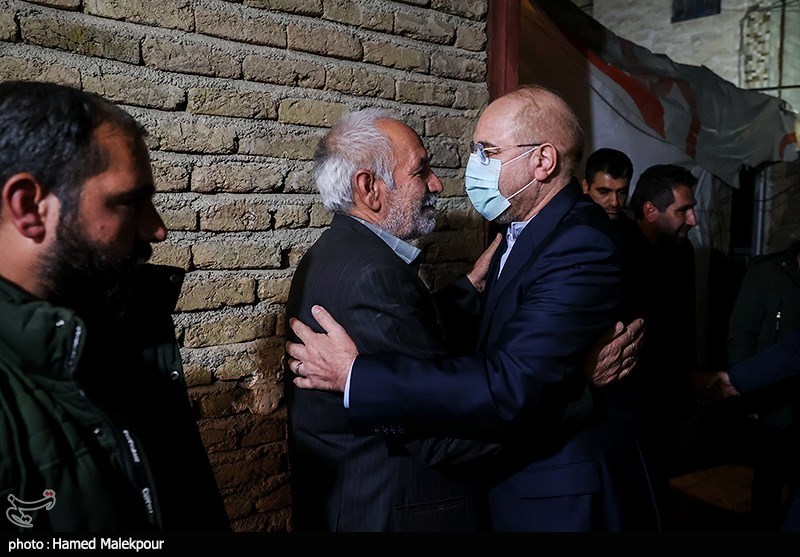 حضور رئیس مجلس در منزل شهید مدافع امنیت روح‌الله عجمیان