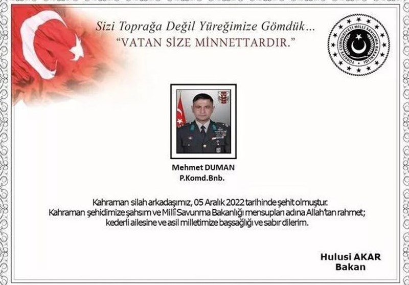 بر اساس این گزارش، سرگرد محمت دومان روز دوشنبه در نتیجه انفجار یک بمب دست ساز کشته شده است.