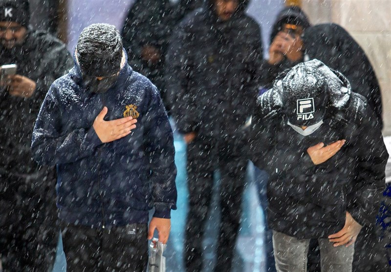 صحن‌های مختلف در این شب برفی دیدنی شده است. چترهایی بر فراز سر زائران گسترده شده است که برف کمتری روی زمین بنشیند و با امنیت بیشتری آمدو شد کنند.