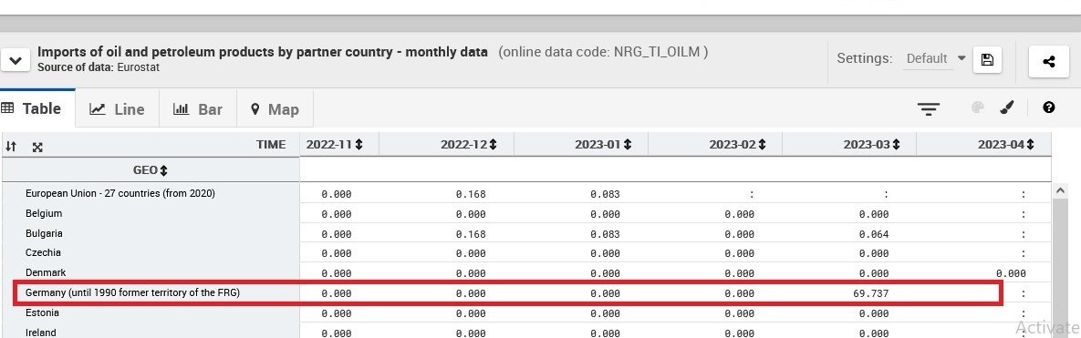 آلمان که آخرین بار در اکتبر 2018 یک محموله 10هزارتنی نفت خام یا فرآورده نفتی از ایران وارد کرده بود در ماه مارس 2023 پس از حدود 5 سال 69 هزار و 737 تن نفت خام یا فرآورده از ایران وارد کرده است.