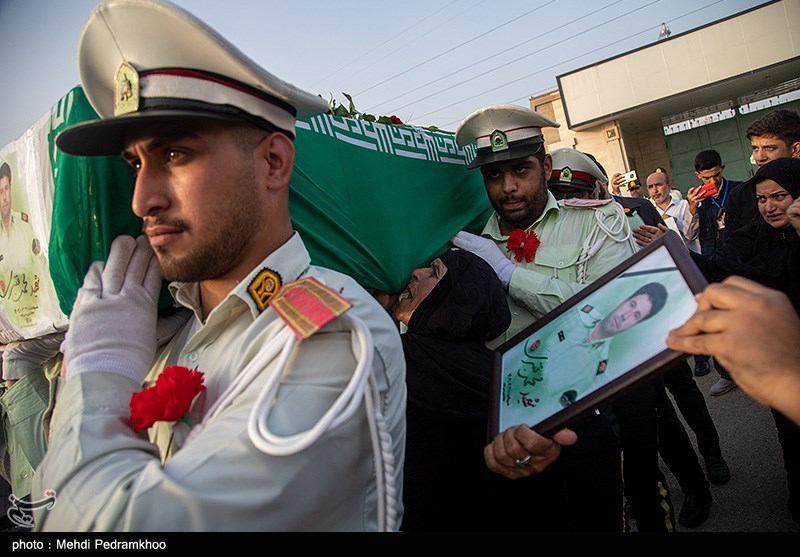 وداع باشکوه با شهید ‌امنیت در اهواز/ ‌پیکر شهید ‌قنبری‌ بر دوش همرزمانش تشییع شد + تصاویر