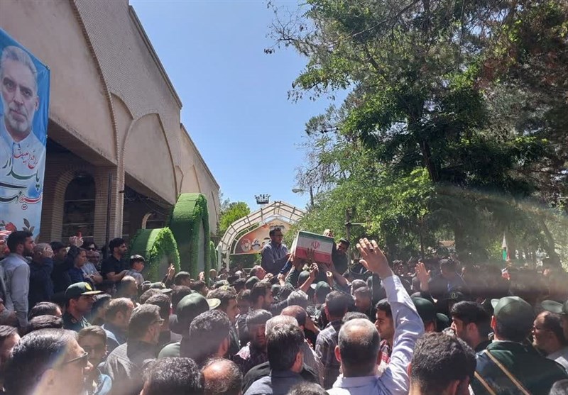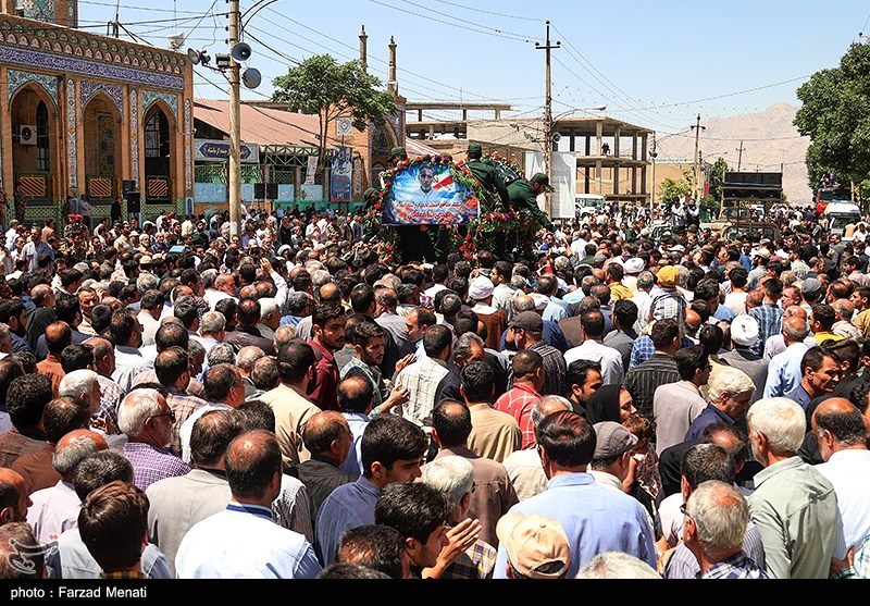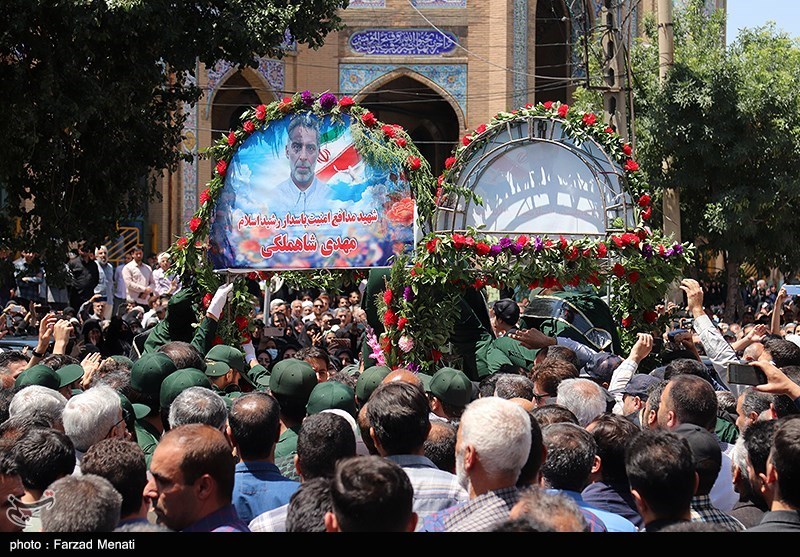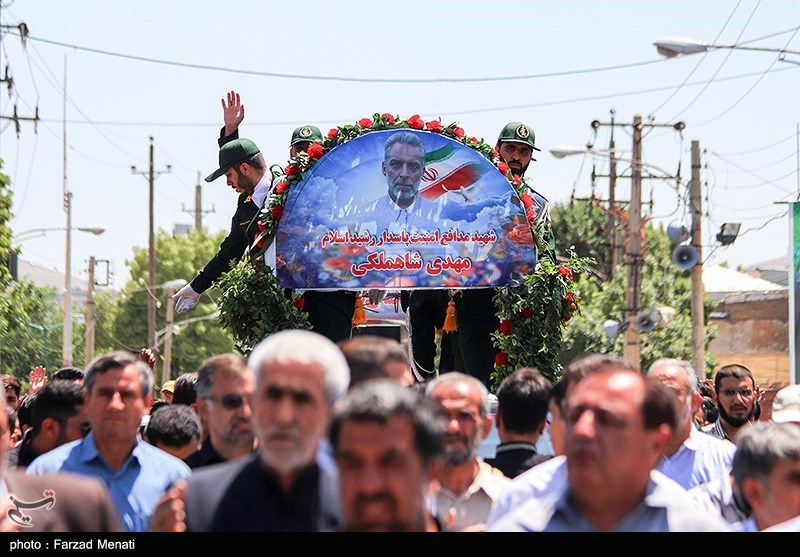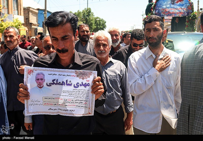 تشییع باشکوه پیکر شهید شاه‌ملکی در کرمانشاه/ پیکر شهید در ‌ ‌گلزار شهدا آرام گرفت + فیلم و تصاویر
