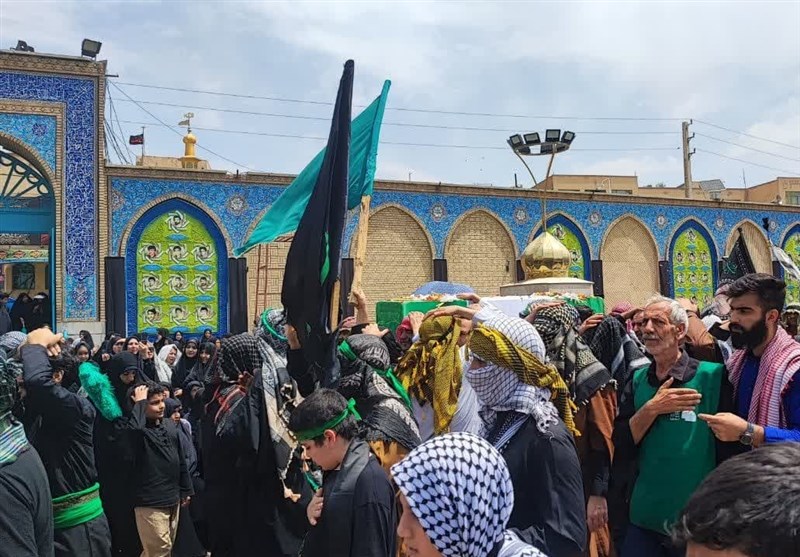در ادامه این مراسم این هنرمندان به صورت نمادین پیکر شهدای دشت کربلا را که 3 روز بر روی زمین باقی مانده بودند را جمعآوری کرده و در صحن مطهر امامزاده جعفر(ع) برادر امام رضا (ع) طواف دادند.