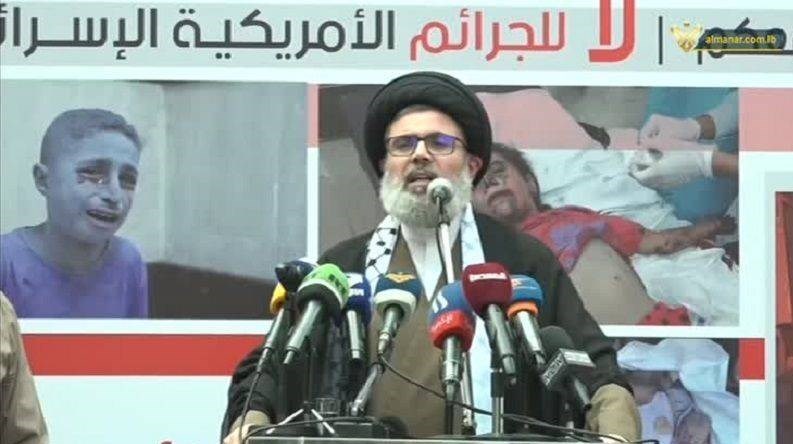 سید هاشم صفیالدین با هشدار درباره توطئه شوم رژیم صهیونیستی و آمریکا برای آوارگی اجباری اهالی غزه و اسکان آنها در خارج از فلسطین اعلام کرد که دشمن اشغالگر به جنایتهای خود در هدف قرار دادن بیمارستانها و تیمهای پزشکی و دفاع شهری و کودکان ادامه خواهد داد و بنابراین همه باید در مقابل پروژه شوم اخراج ساکنان غزه بایستند و ما از همین جا اعلام میکنیم کنار غزه میمانیم.