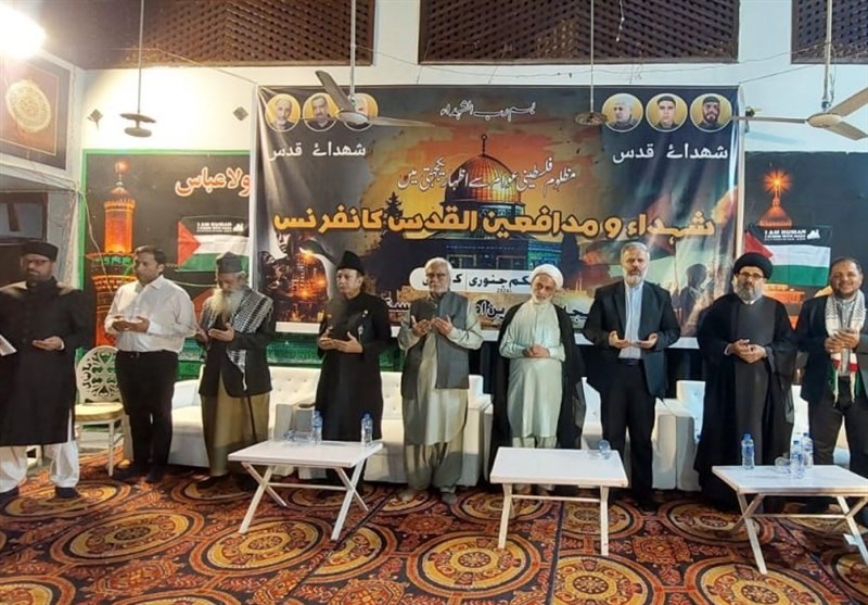 به گزارش خبرنگار فرهنگی خبرگزاری تسنیم، در کنفرانس شهدا و مدافعین قدس به همت مجلس ذاکرین امامیه پاکستان و با حمایت خانه فرهنگ جمهوری اسلامی ایران در شامگاه دوشنبه اول ژانویه مصادف با 11 دیماه در یکی از مناطق شیعه نشین شهر کراچی برگزار شد جمع زیادی از علاقمندان انقلاب اسلامی حضور داشتند.
