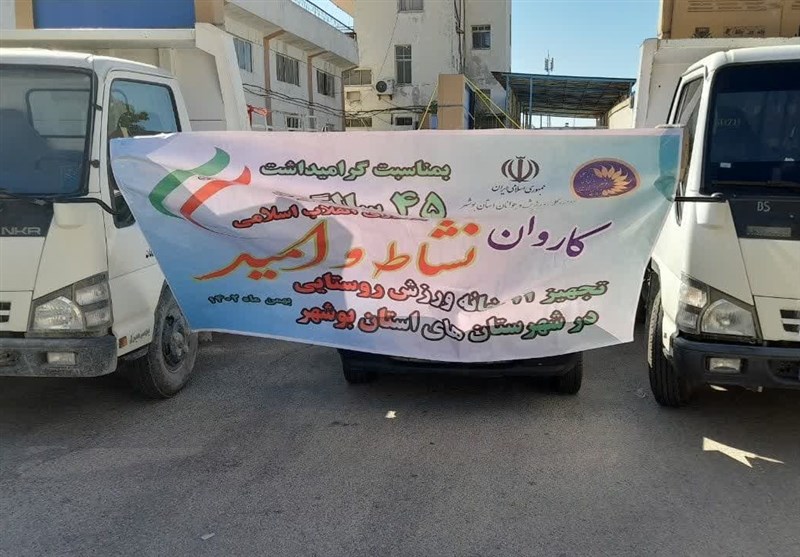 به گزارش خبرگزاری تسنیم از بوشهر، همزمان با چهل و پنجمین سالگرد پیروزی اسلامی ظهر امروز با حضور مدیرکل ورزش و جوانان استان بوشهر، رئیس هیئت ورزشهای روستایی و عشایری و بازیهای بومی و محلی استان و دیگر مسئولان مراسم اعزام کاروان نشاط و امید برای تجهیز خانههای ورزش روستایی برگزار شد.