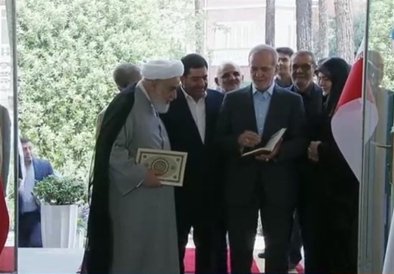 حجتالاسلام گلپایگانی رئیس دفتر مقام معظم رهبری، سیدعلیرضا مرندی وزیر اسبق بهداشت و غلامحسین اسماعیلی رئیس دفتر شهید رئیسی و حاجیمیرزایی وزیر اسبق آموزش و پرورش و دختر پزشکیان، وی را تا محل استقرار خود همراهی کردند.