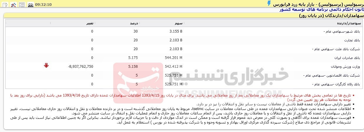 به گزارش خبرنگار ورزشی خبرگزاری تسنیم، در نهایت پس از چند ماه تلاش پروسه واگذاری باشگاه پرسپولیس به کنسرسیومی از بانکها به نتیجه رسید و نام سهامداران جدید این باشگاه در تابلوی نماد پرسپولیس در فرابورس نشست.